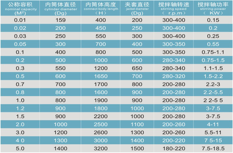 攪拌種子罐主要技術(shù)參數(shù)參考表/Reference table of main technical parameters of stirring seed tank